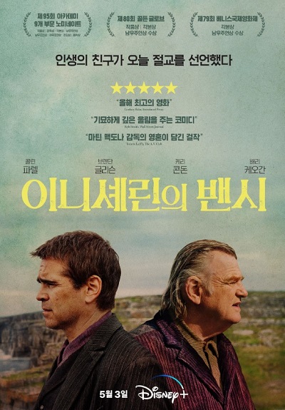 디즈니 플러스에서 오늘부터 영화 <이니셰린의 밴시>를 스트리밍 서비스하기 시작했습니다. 이미 다양한 영화제에서 노미네이트 된 만큼 작품성이 매우 뛰어납니다. 영화 내내 어떻게 전개될지 전혀 예상이 되지 않습니다. 친구가 절교를 선언하자 그 이유를 알고자 합니다. 이유를 찾아가는 과정에서, 깊은 인생의 깨달음을 전달합니다. 또한 그 과정은 눈물 나게 코믹합니다. 과연 감독이 전하고자 하는 메시지는 무엇일까요?